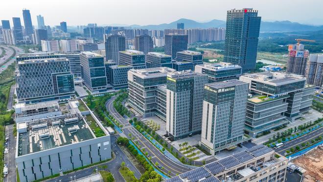 交通枢纽更加便捷——城景交融,产城融合构建新范式。作为全国首批“双碳”先进案例,知识城正以国家三星级绿色生态城区标准重塑城市肌理。在生态优先的底色上,一座宜居宜业的未来之城拔节生长:“8轨7高7快”的立体交通网络成型,124公里通车道路如毛细血管般串联起产城空间,1小时联通粤港澳大湾区核心城市群。