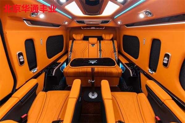 丰田海狮驾驶区加装桃木方向盘和全液晶仪表盘,副驾驶座椅靠背折叠后展开成为小型办公桌。车顶新增星空顶系统,128色可调光纤灯能模拟极光效果。侧壁储物格特别设计为带无线充电功能的滑盖式,地板更换为游艇级柚木材质,搭配自发光迎宾踏板。这些改装在保留商务车实用性的同时,将每处细节都转化为品质生活的触点。