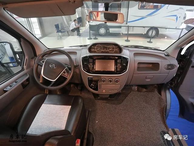 动力参数:动力搭载2.0T柴油发动机,匹配6AMT手自一体变速箱。无中门的设计,所以将右侧的入口设计在了副驾驶的位置,副驾驶座椅设计成了导游椅的样式,更方便的从副驾驶上下车。驾驶舱采用原装底盘的配置,没有改动。